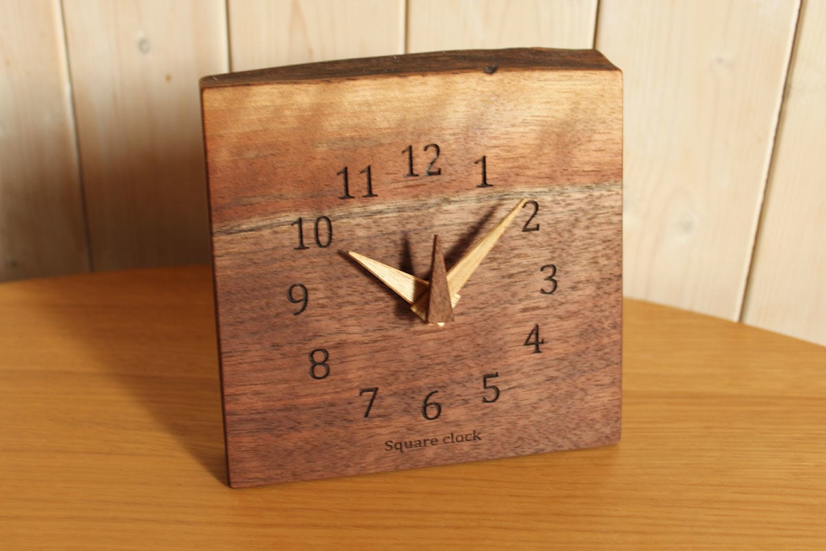 木の耳(丸太の時の表層の形)を一辺だけ残したシンプルな四角型時計です。